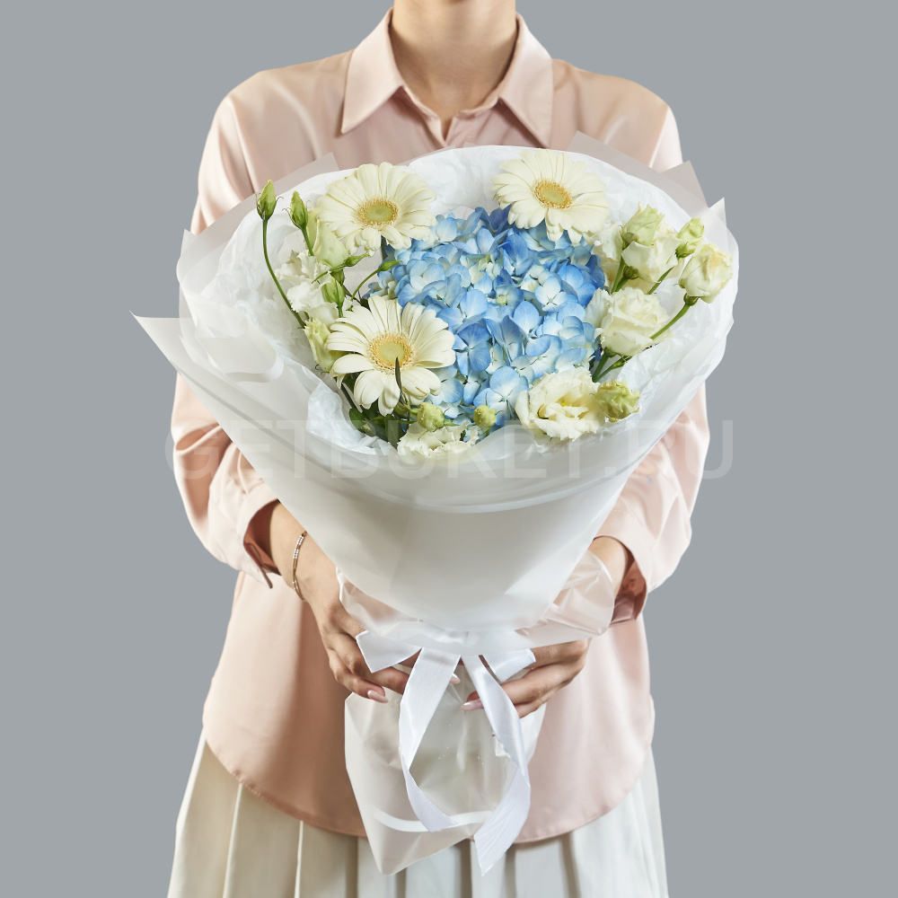 Букет из голубой гортензии, розовых гвоздик и роз с эвкалиптом6 310 ₽Букет из голубой гортензии, розовых гвоздик и роз с эвкалиптом 6 310 ₽ -