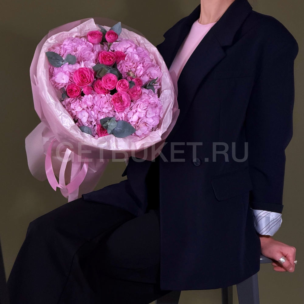 Букет из гортензий и кустовых роз