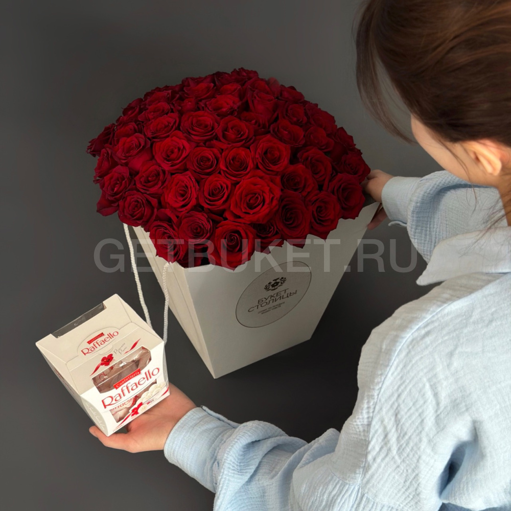Букет из 51 розы с конфетами рафаэлло