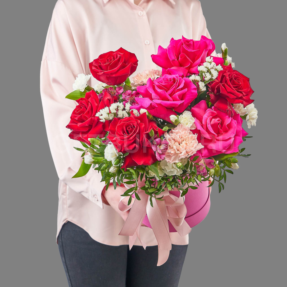 Композиция из красно-розовых кенийских роз в шляпной коробке7 480 ₽Композиция из красно-розовых кенийских роз в шляпной коробке 7 480 ₽ -