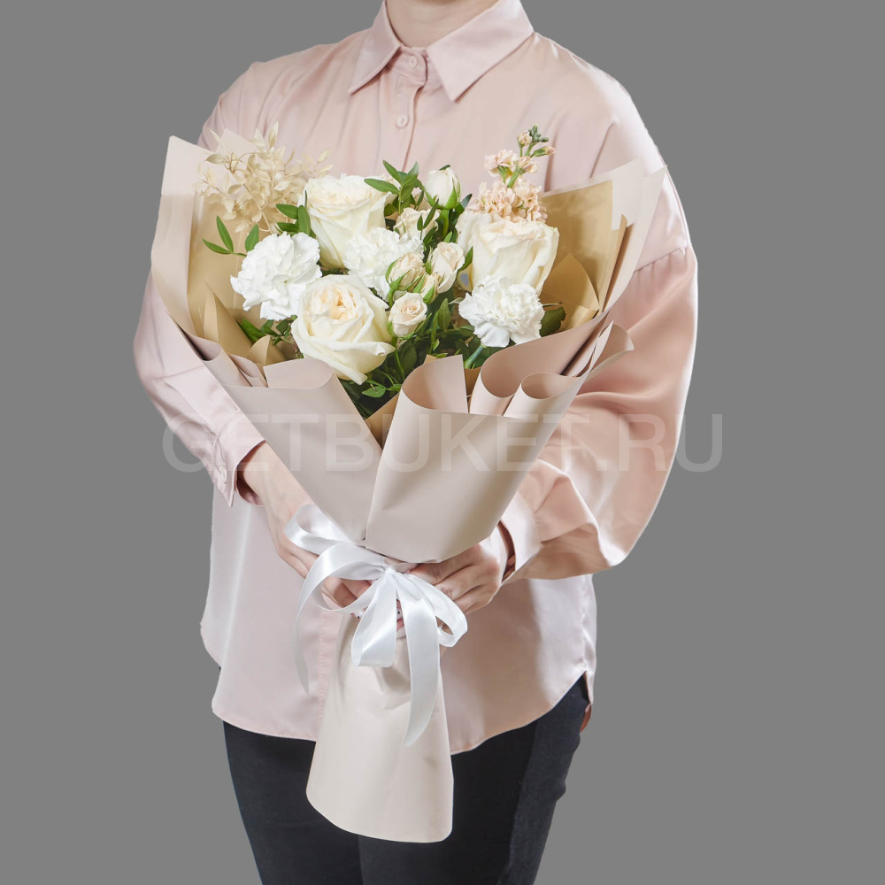 Возможны минимальные отличия букета от фотографии и допустимы отличия по цветовой гамме, так как цветы являются природным материалом и собираются вручную