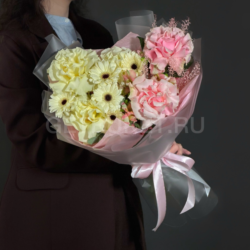 Букет розовых гербер, хризантем и роз с альстромерией7 890 ₽Букет розовых гербер, хризантем и роз с альстромерией 7 890 ₽ -