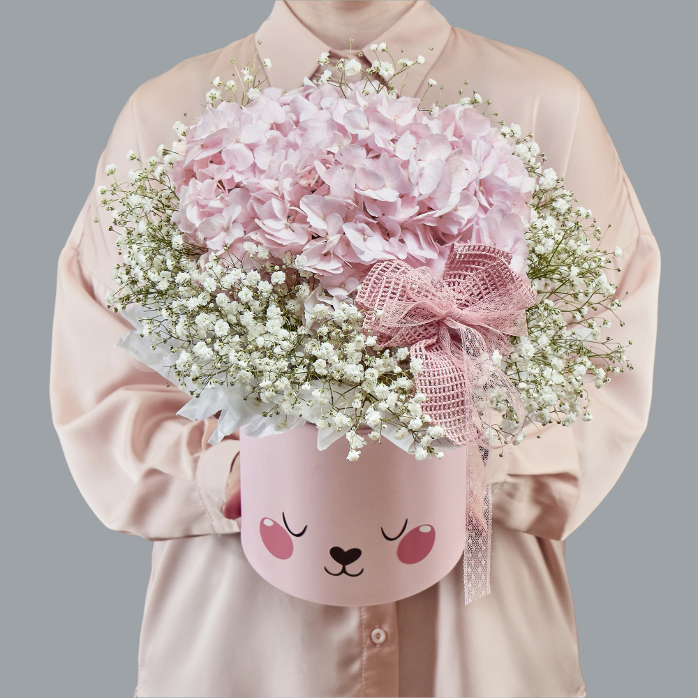 Цветочная композиция из гортензий с гипсофилой в шляпной коробке4 440 ₽Цветочная композиция из гортензий с гипсофилой в шляпной коробке 4 440 ₽ -