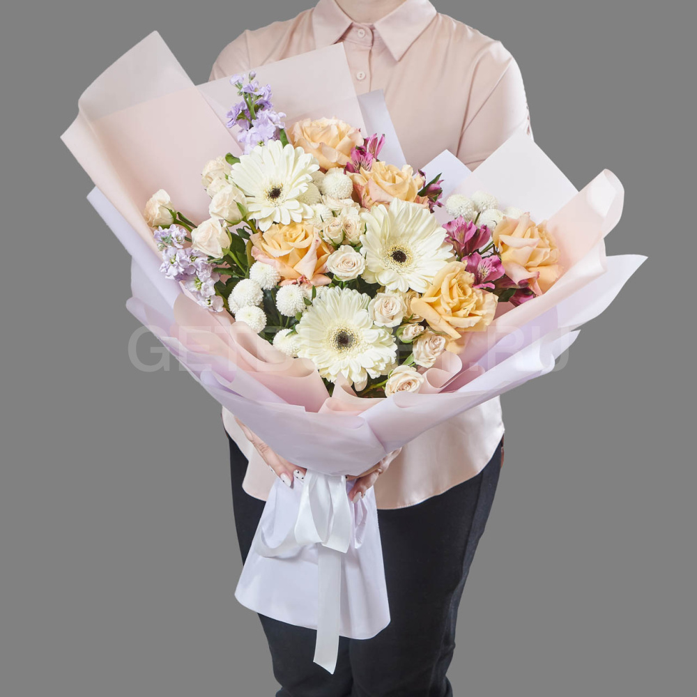 Букет белых гербер и роз с альстромерией4 740 ₽Букет белых гербер и роз с альстромерией 4 740 ₽