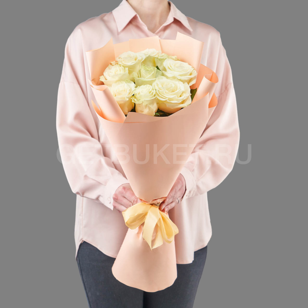 Букет из 9 белых роз в упаковке
